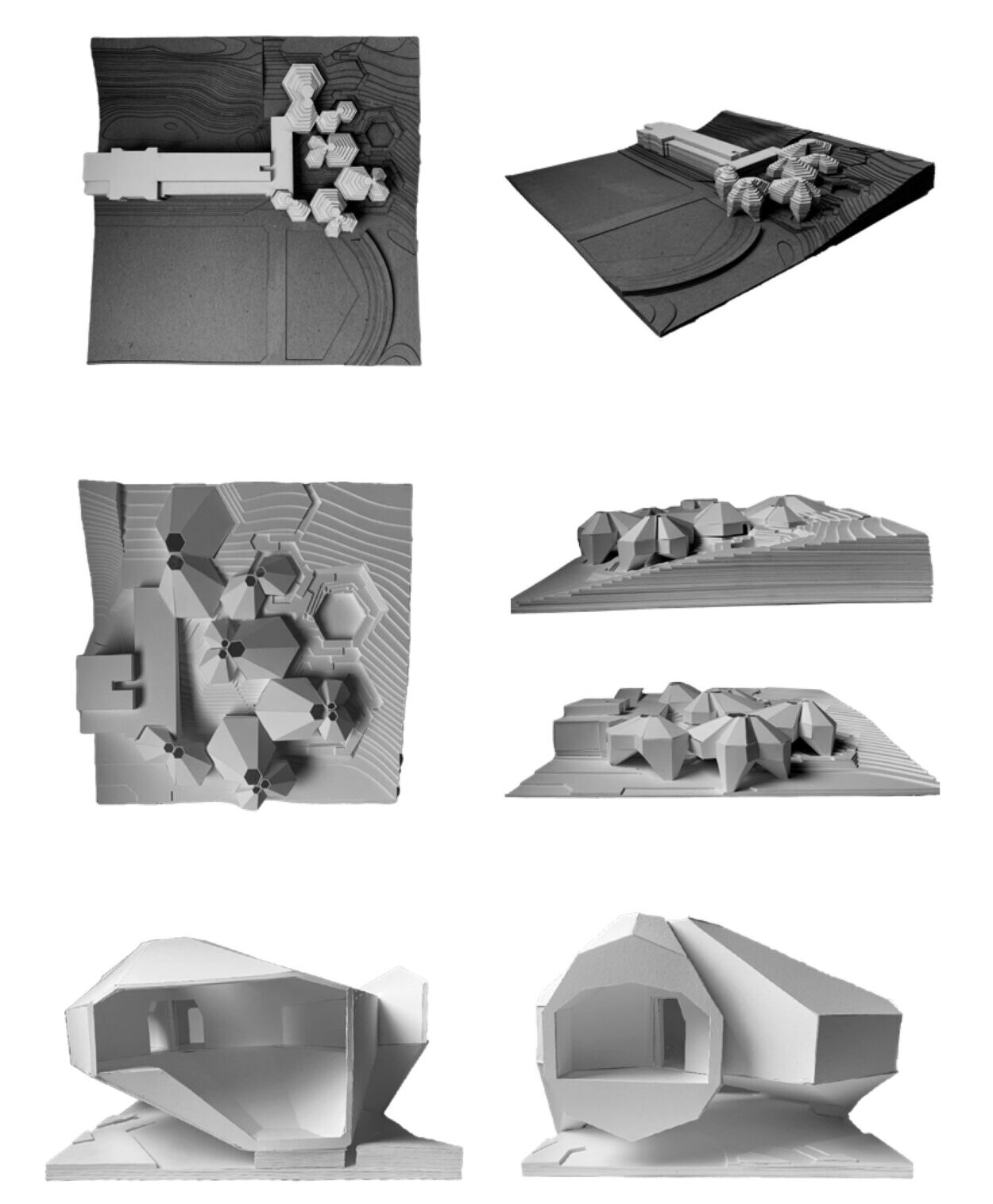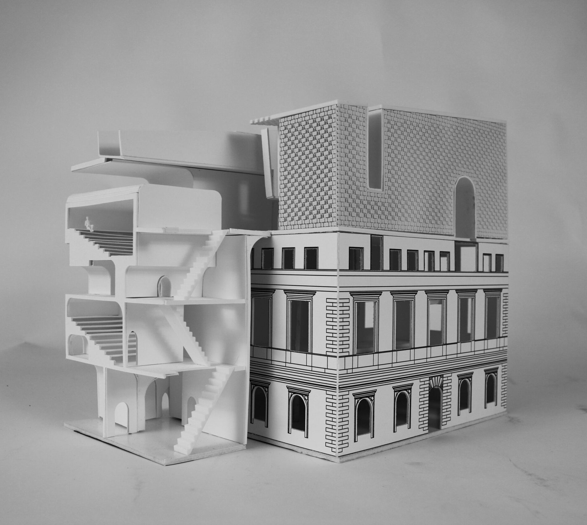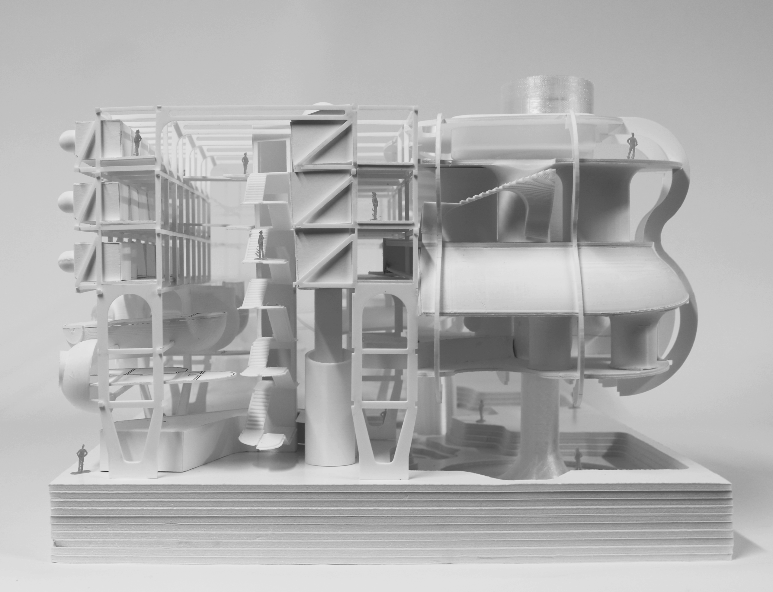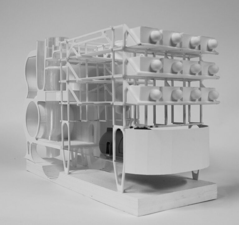 Final physical model of “The Pod” project. Represents the full scale building showing it’s juxtaposing composition.