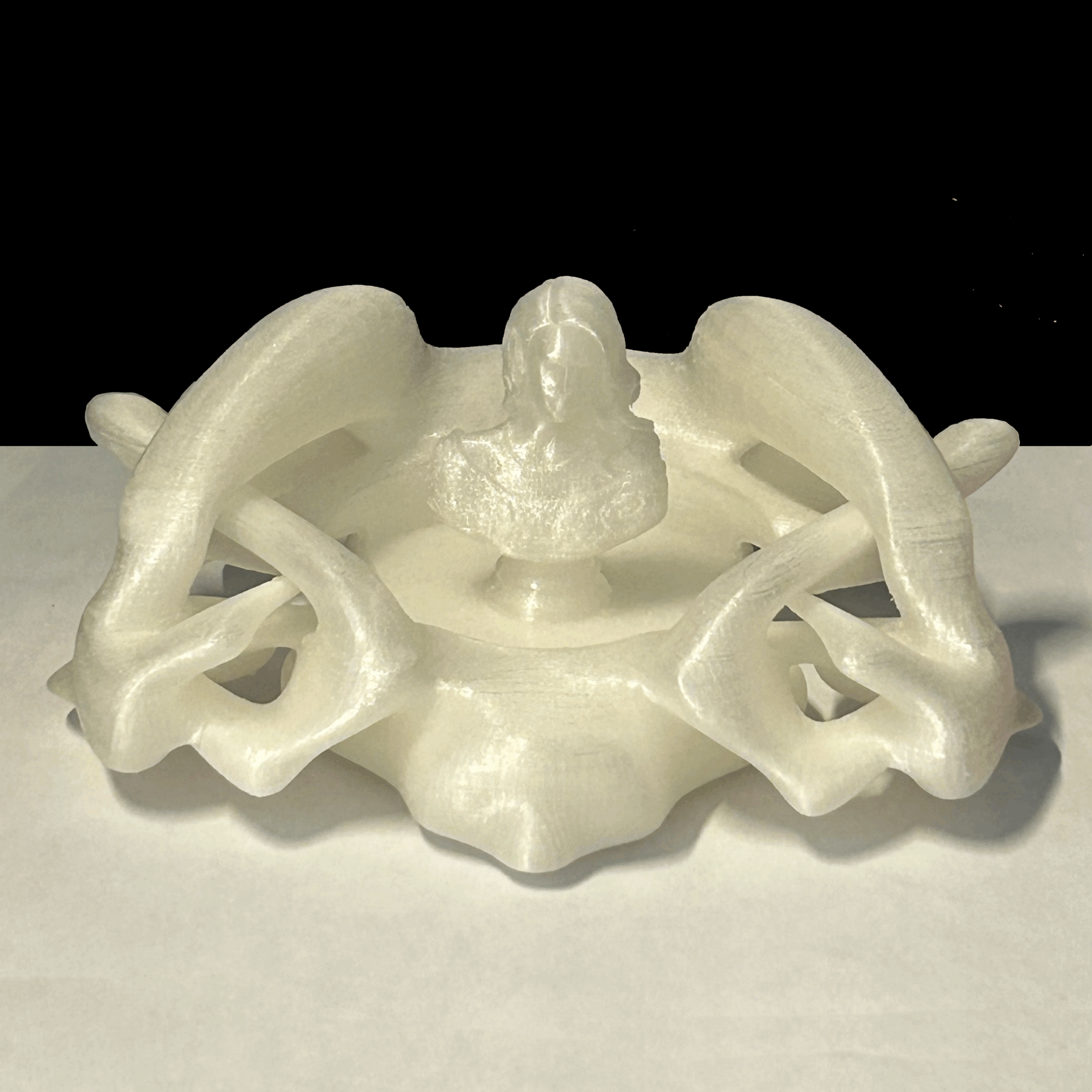 Glass holder 3D modeled and printed using a combination of SUBD and NURBs geometries. The figure is a virtual asset added to the model.